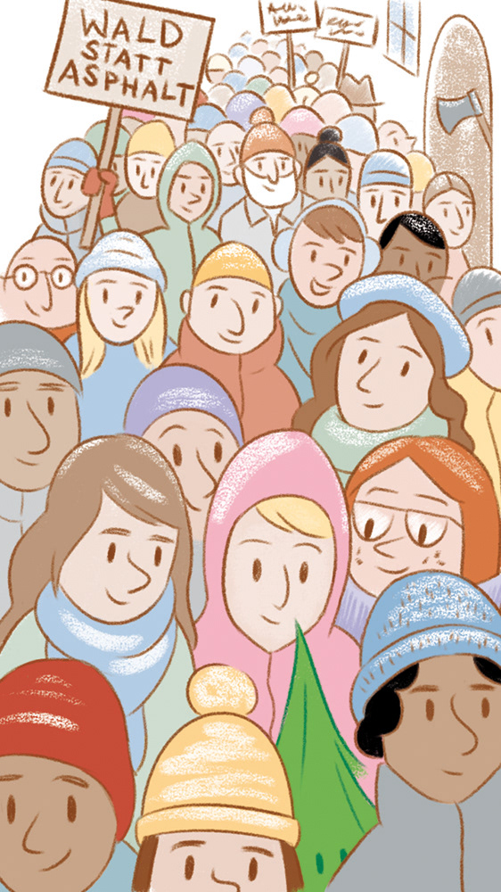 Seit über 5 Jahren hatte ich Skizzen zu einer Verfolgungsjagd mit einem kleinen Tannenbaum und einem Holzfäller in der Schublade aber nie richtig Zeit gehabt sie umzusetzen. Um mich von dem tristen Pandemie-Advent 2020 abzulenken und möglicherweise auch andere aufzumuntern, habe ich dann Ende November angefangen daraus diese Advent-Bilder-Geschichte zu machen. Da sich die „story“-Funktion auf instagram für die Bildgeschichte recht gut eignet, weil man da so schön durch „swipen“ kann und eine große Bild-Fläche zur Verfügung hat, hab ich sie dort jeden Tag in den „stories“ gepostet. Eigentlich wollte ich für jeden Adventstag nur ein paar Bilder zeichnen aber es ist dann an mancher Stelle etwas ausgeartet... :) Nun kann man sie unten einzeln anklicken oder in einem durch.
